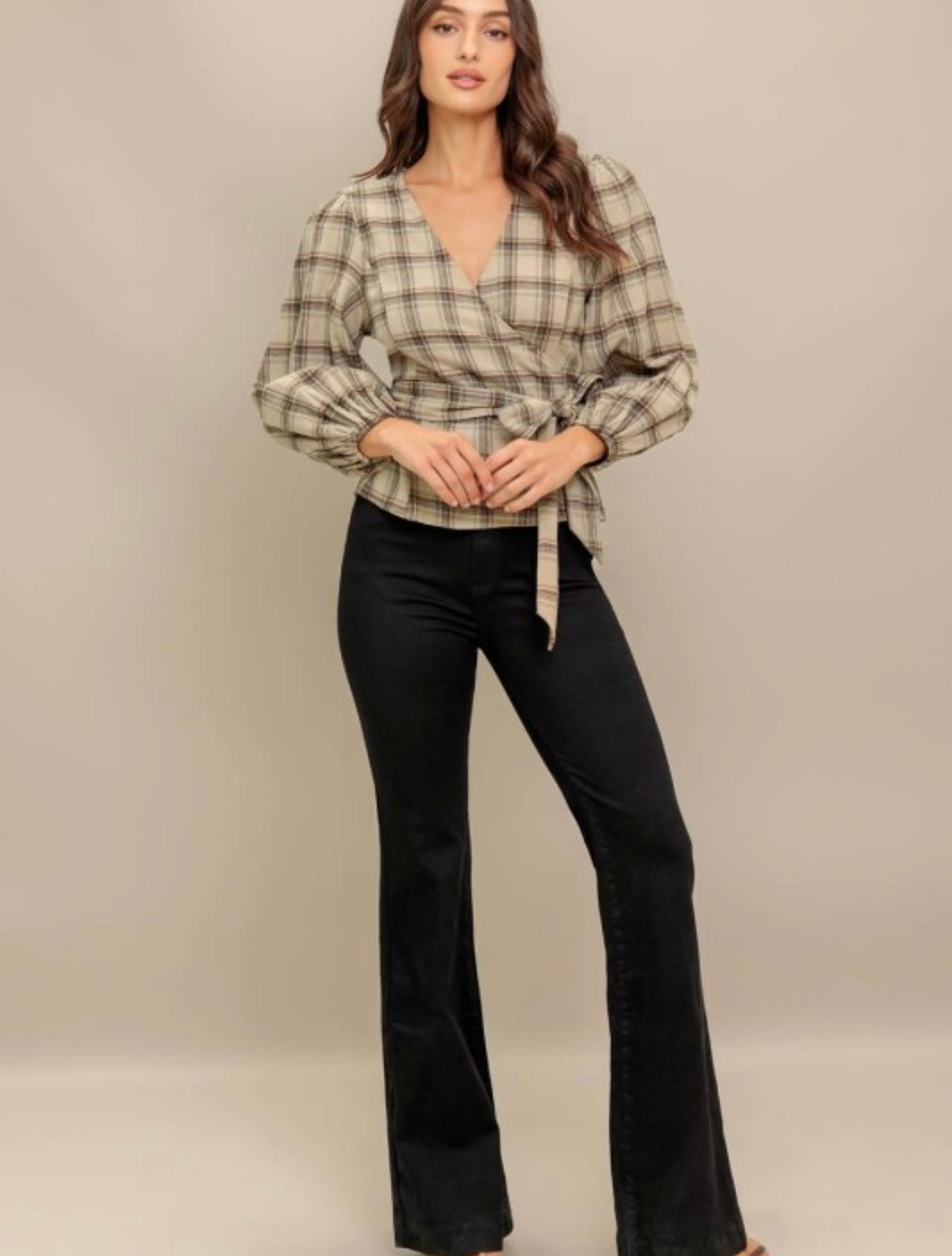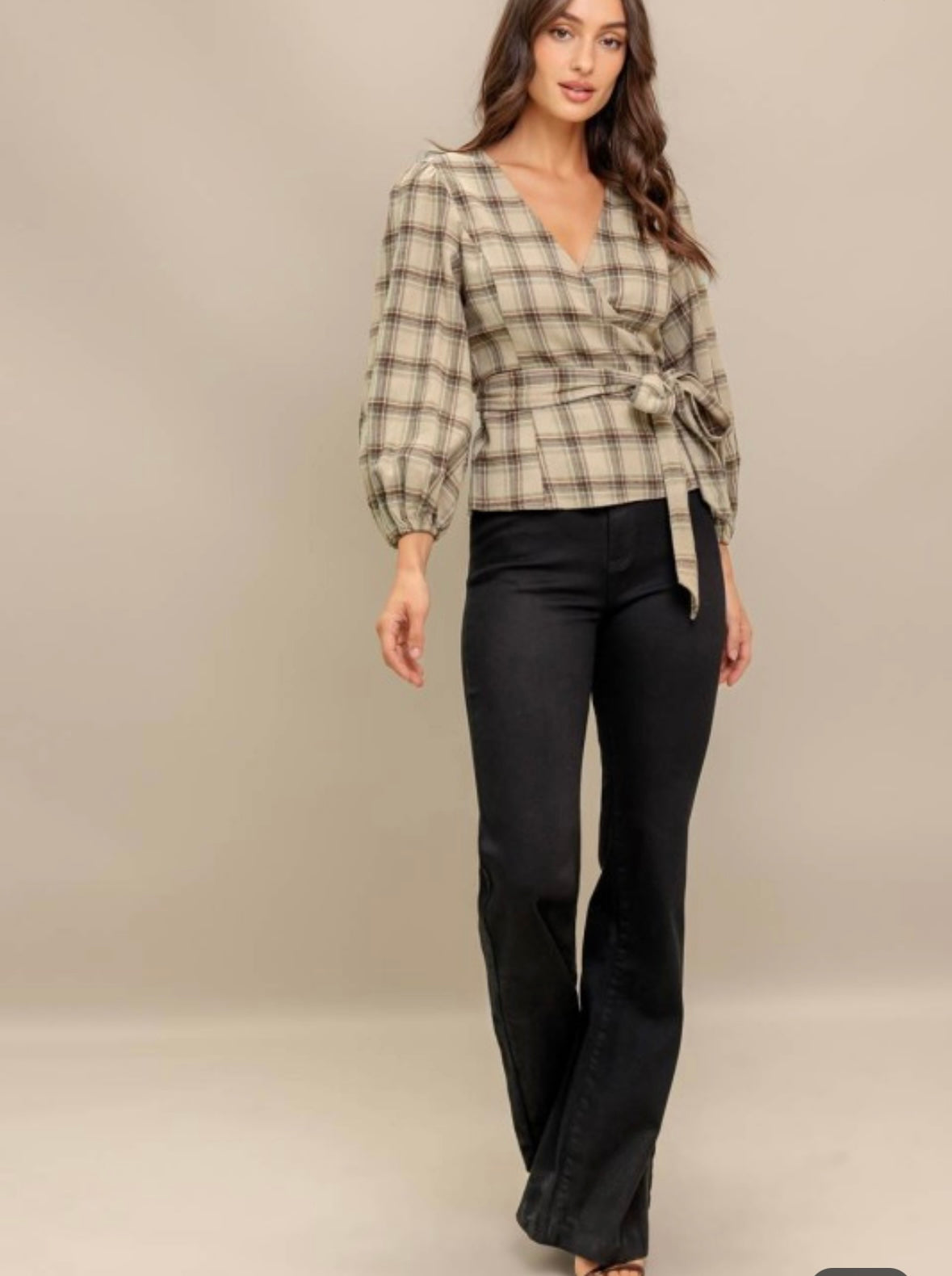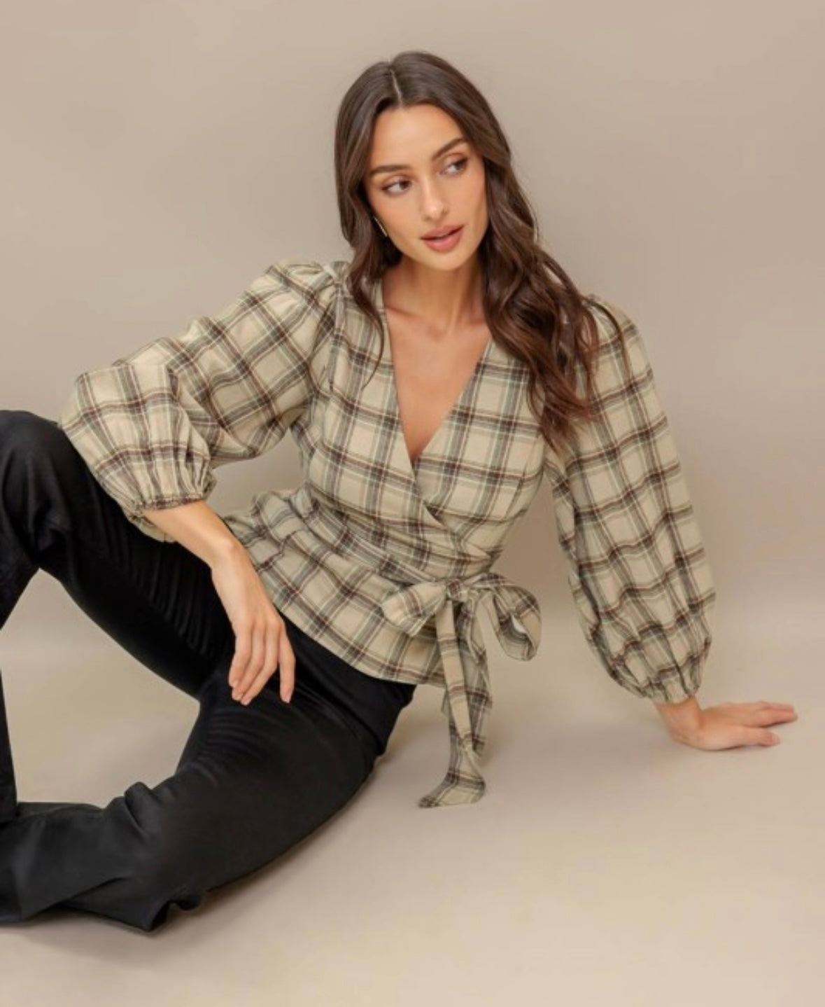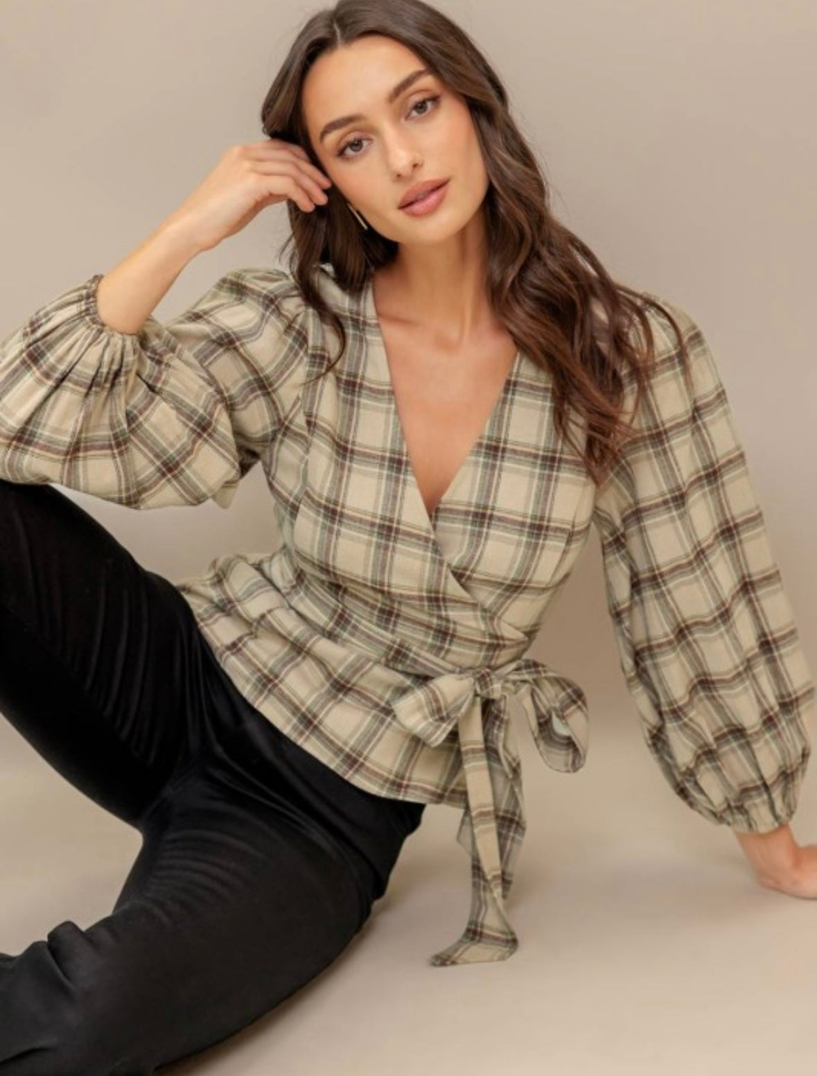 Embrace cozy vibes with this lovely new top! Featuring a charming plaid pattern perfect for crisp fall days. Its long sleeves keep you warm while the wrap style adds a flirty, flattering fit. Pair it with your favorite boots and jeans for an effortlessly stylish autumn look.